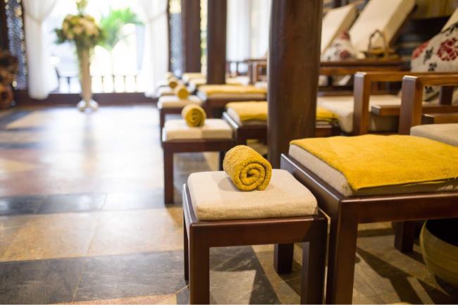 - Herbal Bag Massage: Giải phóng căng thẳng và độc tố bằng cách đắp túi thảo mộc lên cơ thể. Túi thảo dược cải thiện lưu thông máu và sẽ làm dịu hệ thần kinh của bạn. Trong các phương pháp trị liệu chuyên biệt, nơi tất cả các giác quan và nguồn năng lượng được tạo ra… tất cả hòa quyện với nhau mang đến cho bạn Cảm giác tái sinh sau những ngày mệt mỏi.
